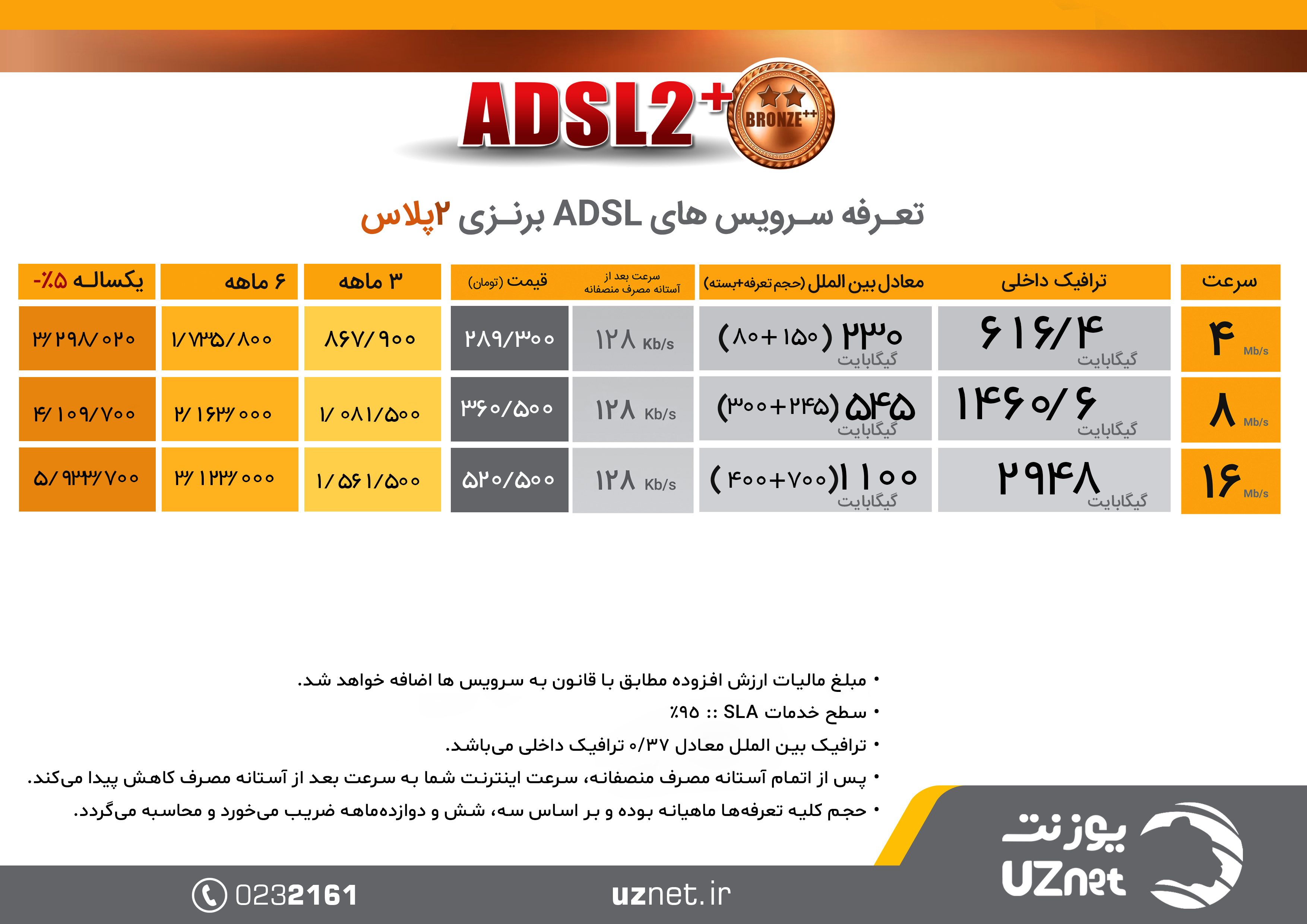 | سرعت سرویس | مدت سرویس | ترافیک داخلی | ترافیک بین الملل | هزینه |